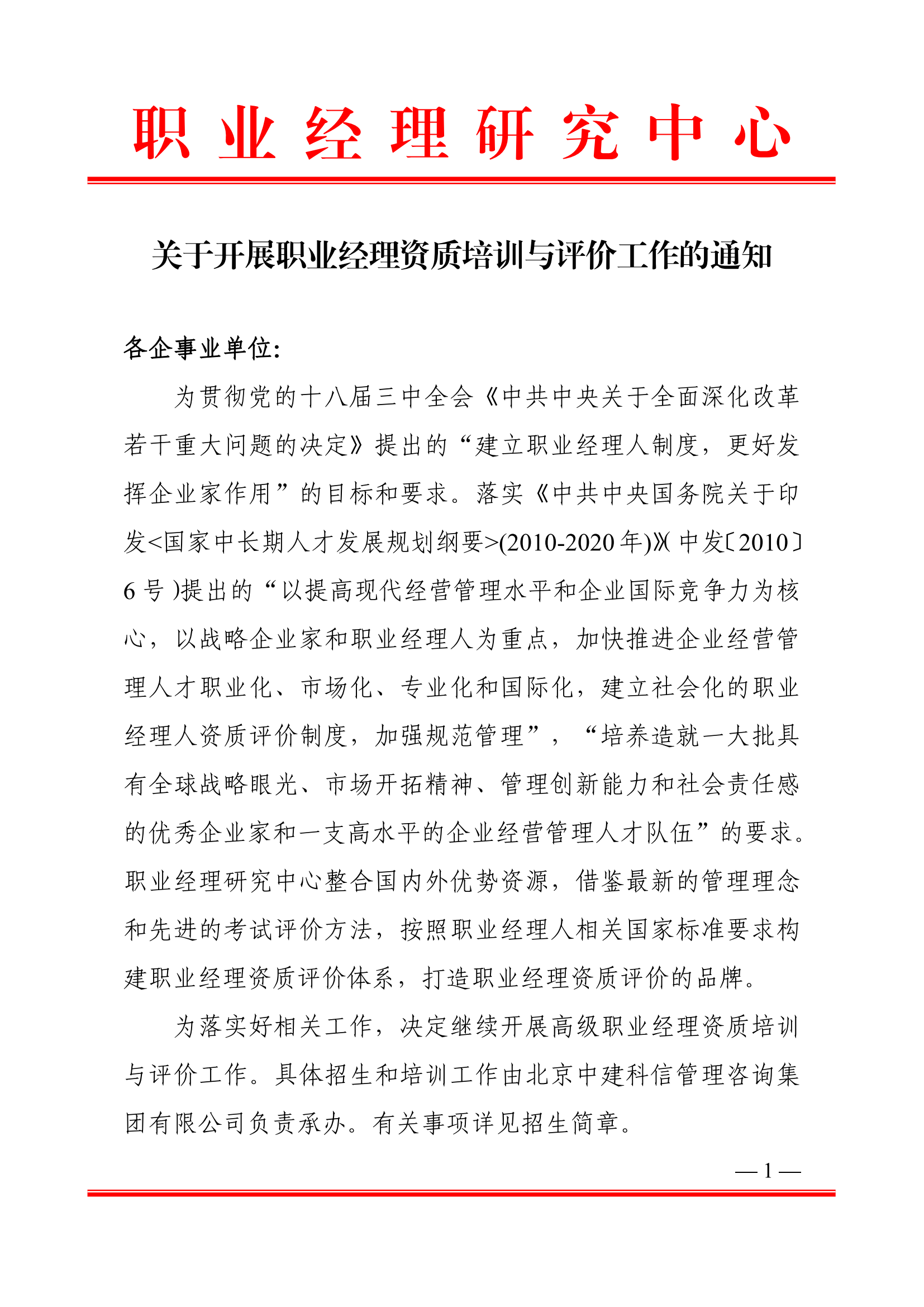 职业经理资质培训与评价招生简章