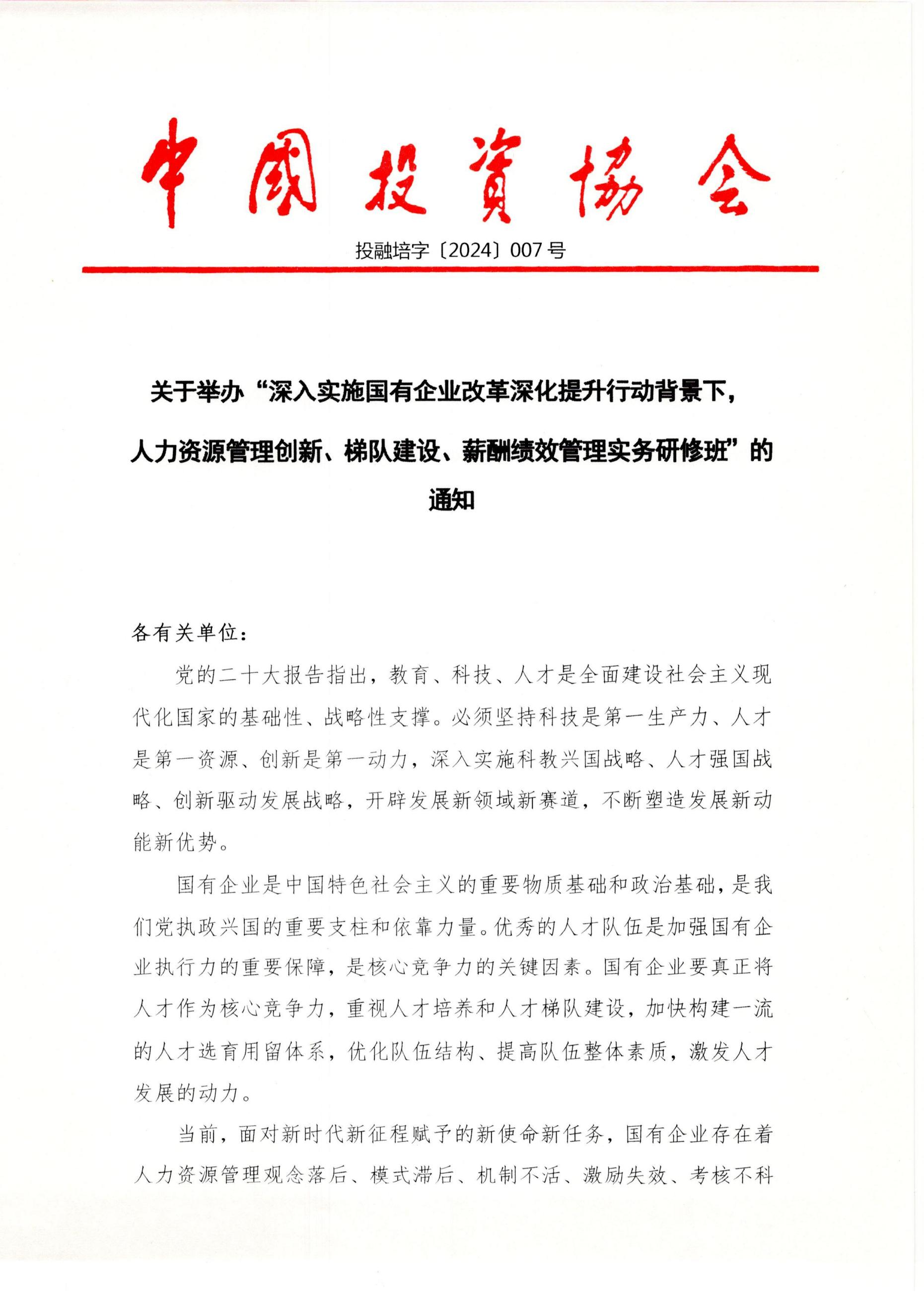 关于举办深入实施国有企业改革深化提升行动背景下,人力资源管理创新、梯队建设、薪酬绩效管理实务研修班(2024年3月8-11日*重庆市、3月22-25日*厦门市、3月29日-4月1日*成都市、4月12-15日*长沙市、4月19-22日*杭州市)