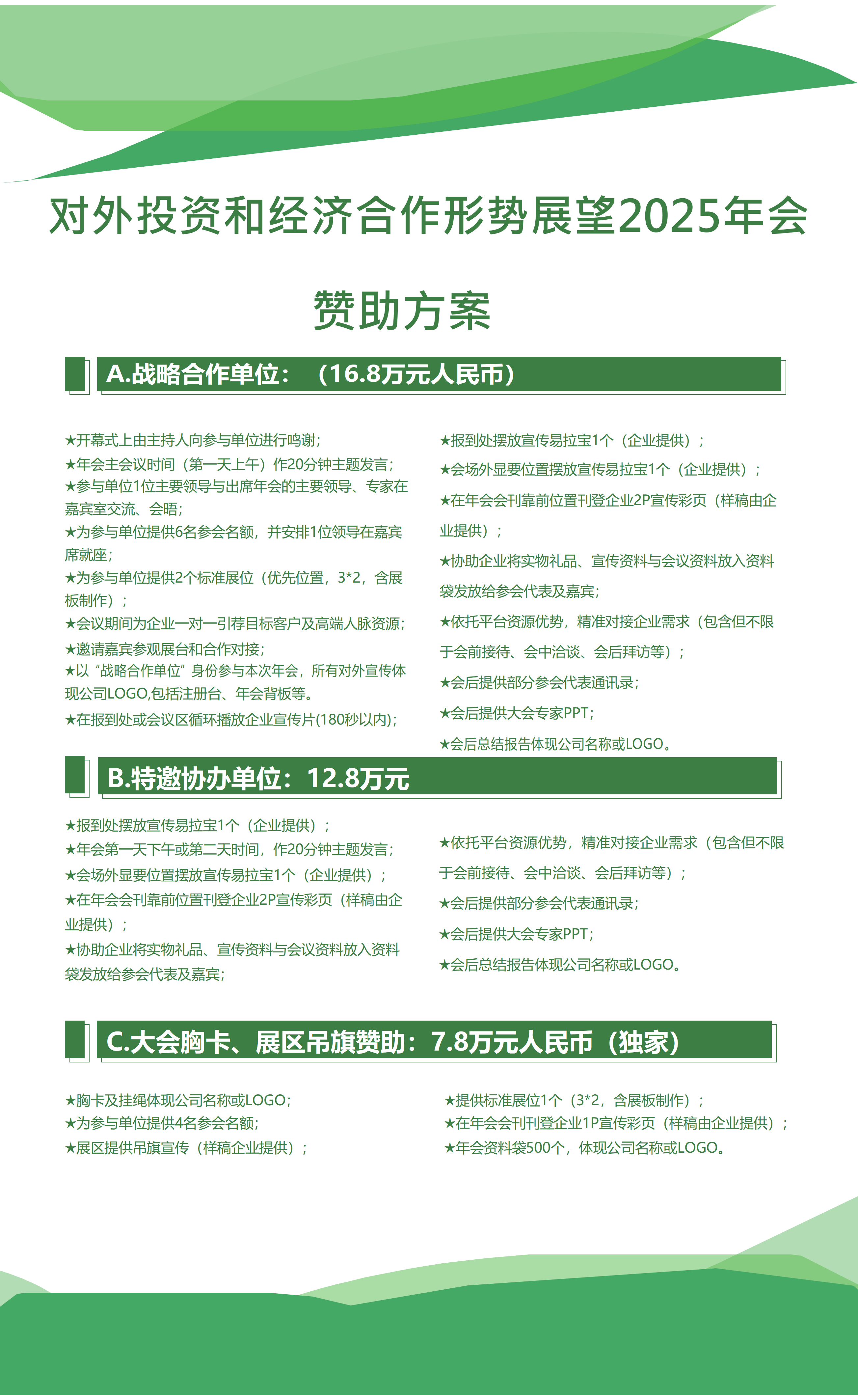 ⑤ 赞助活动:战略合作、协办单位、大会胸卡、展区吊旗赞助 具体详见附件;
