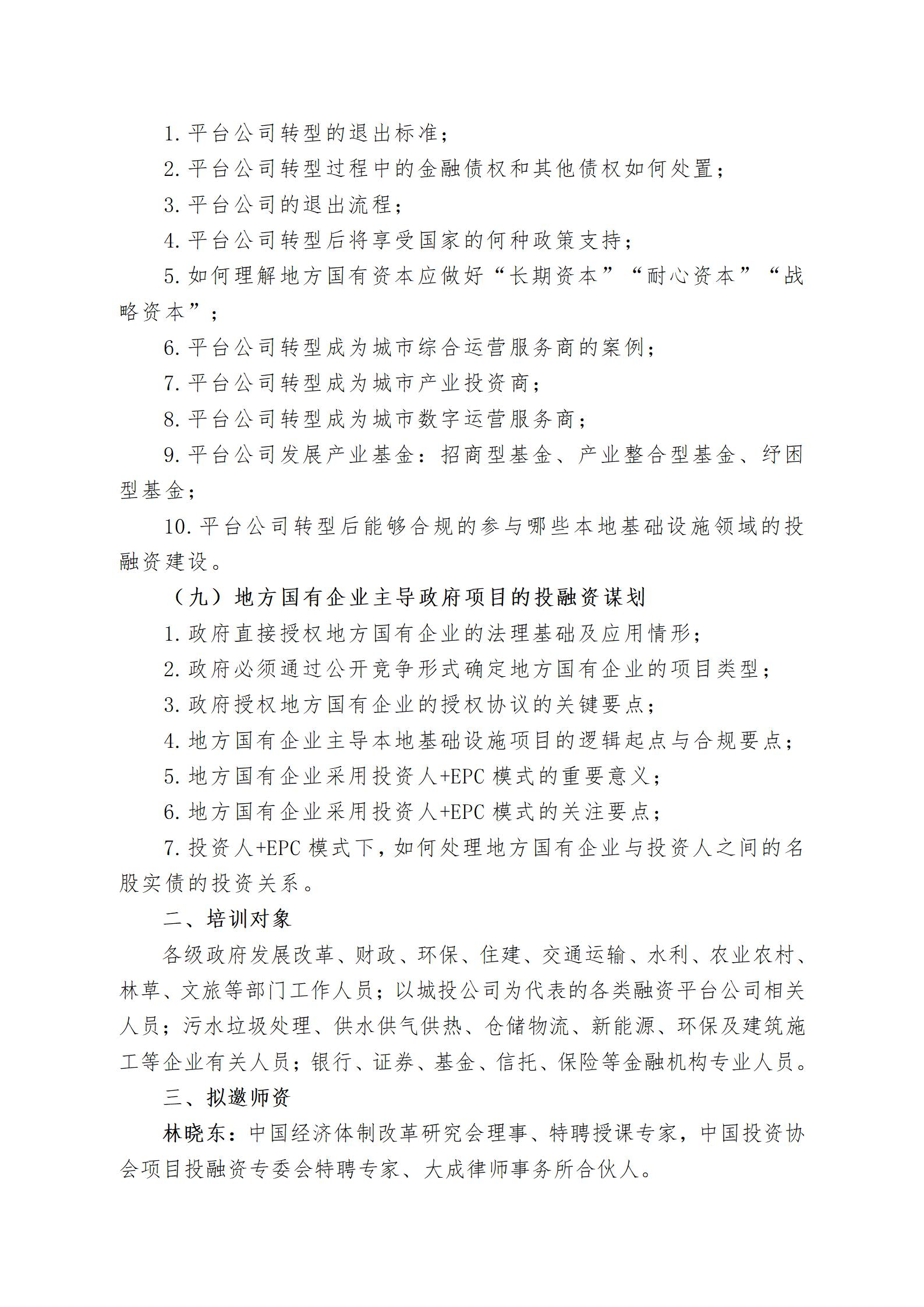 关于举办“新政背景下城市更新、2025年政府投资项目谋划运作、PPP新机制实务及融资平台转型高级研修班”的通知(2025年06月12日—15日*成都市、06月26日—29日、青岛市、07月10日—13日*杭州市、07月24日—27日*郑州市、08月07日—10日*贵阳市、08月21日—24日*西安市、09月04日—07日*南京市、09月11日—14日*长沙市、09月18日—21日*重庆市)